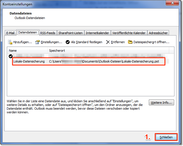 Vergeben Sie einen Namen für die Datendatei (z.B. Lokale-Datensicherung) und bestätigen Sie mit OK.